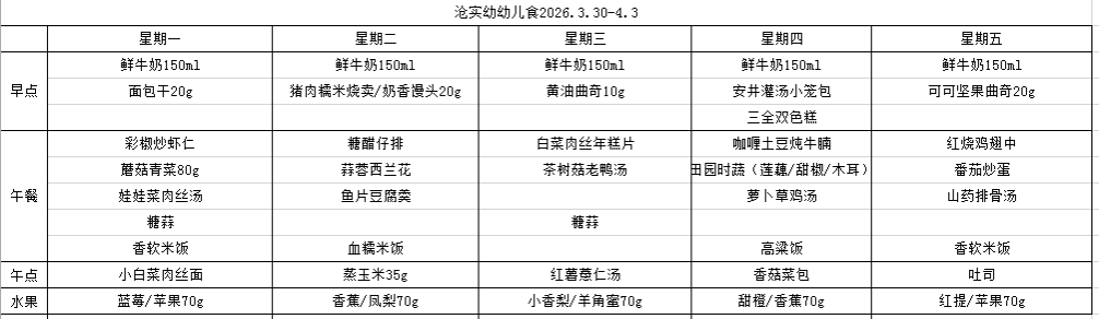 沧实幼食谱(2026.3.30-4.3)