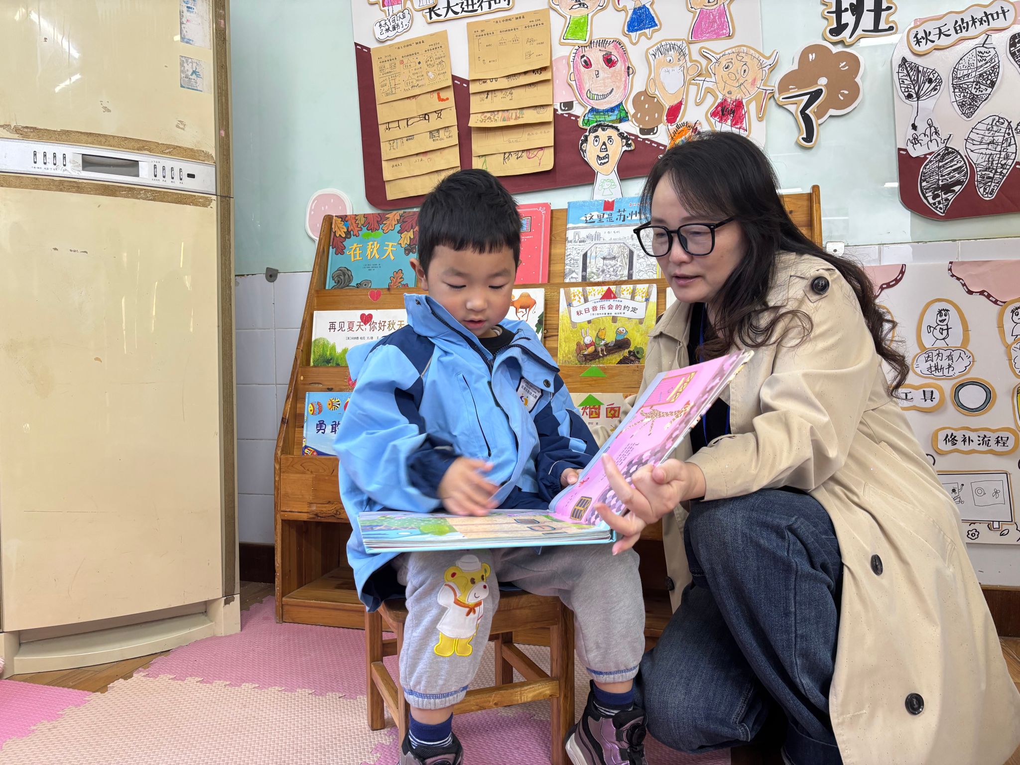 督导还细致地抽查了各班图书角的幼儿图书,对图书的适龄性、种类、数量及更新频率进行了了解。她特别强调了绘本质量对幼儿语言发展与审美培养的重要性,建议我园定期对图书进行筛选和更新,确保图书内容积极向上、画面优美,并鼓励教师多开展高质量的绘本阅读与分享活动。