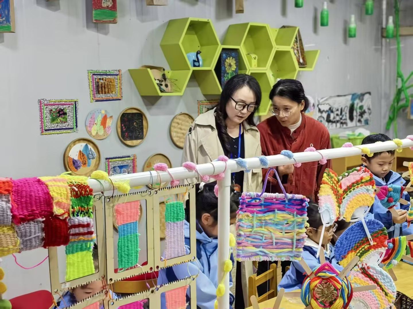 督导首先深入各班活动室,实地观察了班级区域环境的创设与幼儿的游戏状态。沈督导对各班区域设置的合理性、材料的丰富性与层次性给予了肯定,特别是对部分班级能够结合当前主题教学,投放低结构、高探索性的材料表示赞赏。